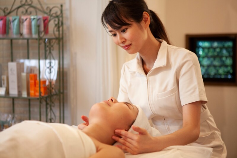 施術は完全個室のプライベート空間で行い、お顔だけでなくデコルテや首元まで丁寧にケア。リフトアップを促す優しいマッサージと合わせて、心地よい手技で深いリラクゼーションを体感いただけます。首のシワケアも含むトリートメントは、全身の美しさを引き上げる特別な時間をお約束します。